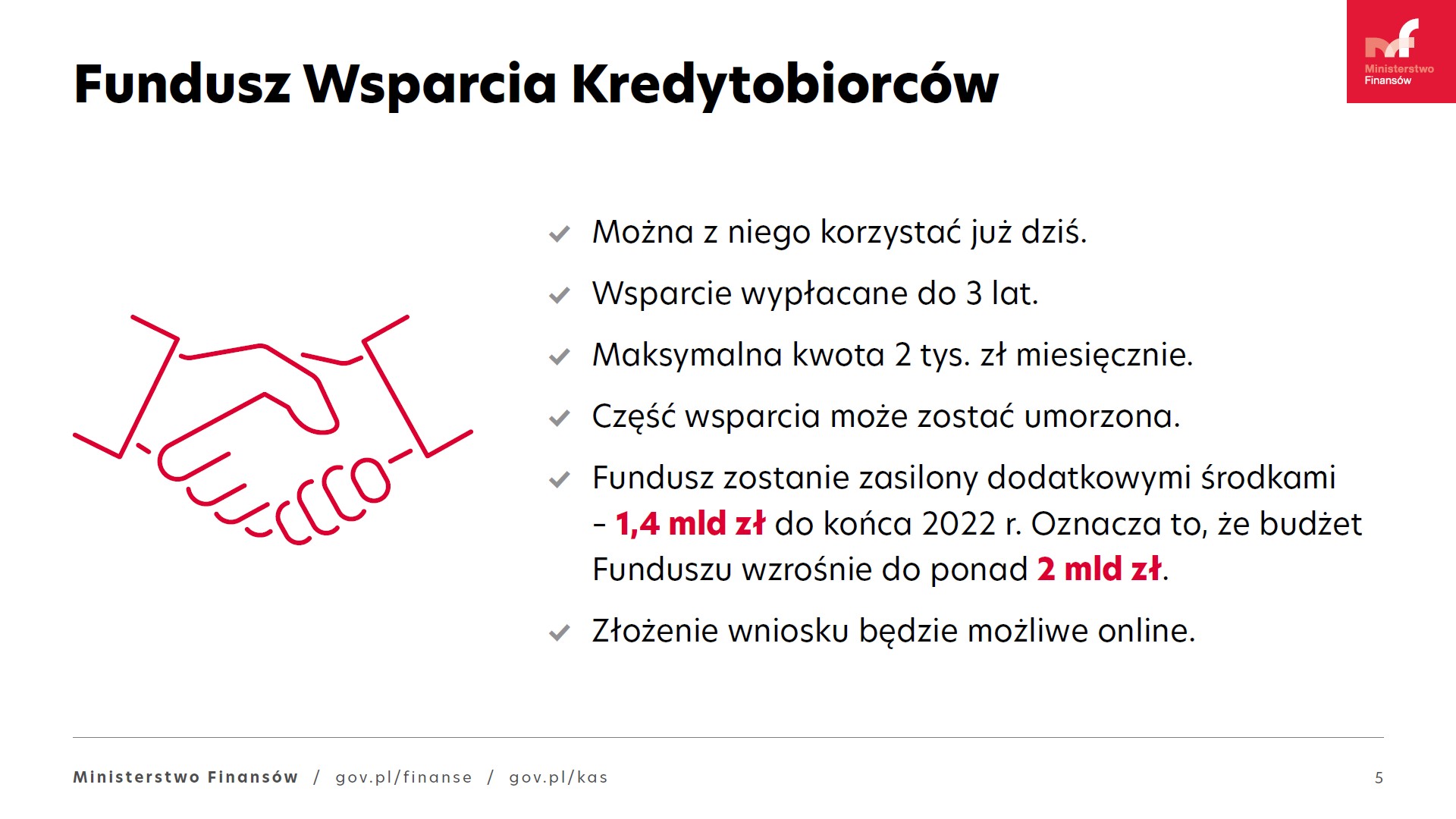 W czerwcu 2022 roku sejm przegłosował ustawę, która zobliguje banki do zasilenia FWK dodatkową kwotą 1,4 mld zł do końca 2022 roku, przez co docelowy budżet Funduszu ma wynieść 2 mld zł. Dzięki temu środków ma wystarczyć dla większej ilości osób uprawnionych do uzyskania wsparcia.